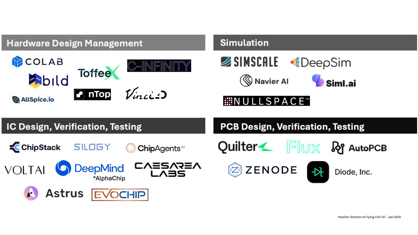 Below is a market snapshot illustrating some of these emerging tools, alongside the key segments in both chips, circuits, and broader hardware design that I’m seeing increased activity in.